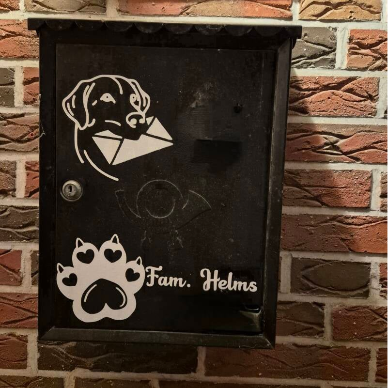 Das Besondere an diesem Pfotenabdruck liegt in der Möglichkeit, ihn ganz nach Ihren Wünschen zu gestalten. Der Sticker kann mit dem Namen Ihres Hundes oder, falls er als Briefkastenschild fungieren soll, mit Ihrem Vor- und/oder Nachnamen versehen werden, wodurch der Sticker zu einem persönlichen und unverwechselbaren Element an Ihrem Briefkasten wird.
